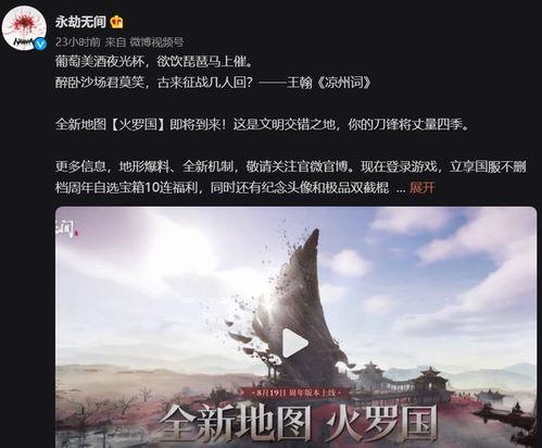亲爱的游戏迷们,你是否也和我一样,对即将到来的《永劫无间》新地图——永劫地图充满期待?最近,网络上爆出了许多关于这个神秘地图的视频,让我们一起揭开它的神秘面纱吧!